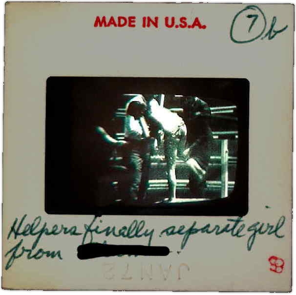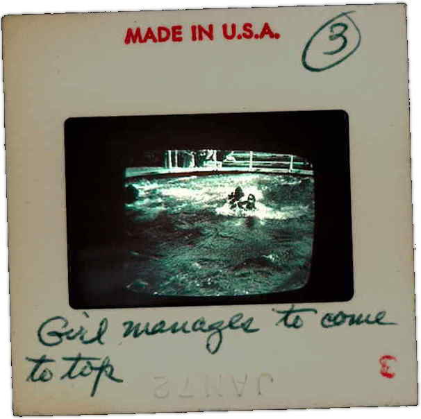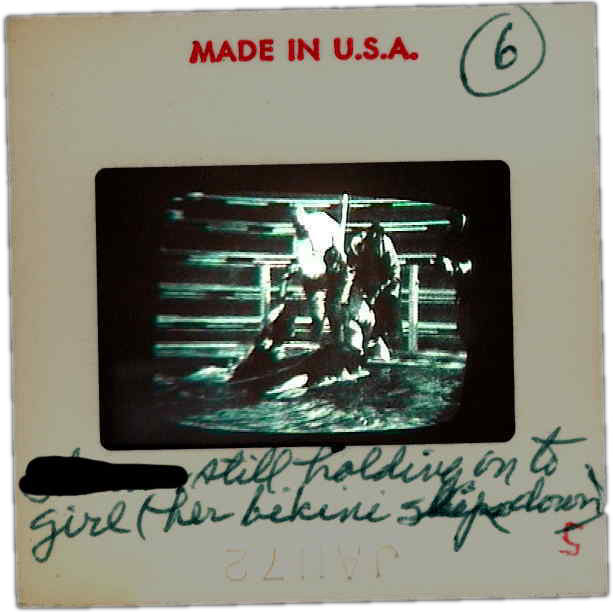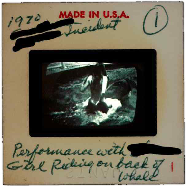 In January of 1998 I received a cease and desist letter from the law offices of Wienberg Sullivan about offending slide photographs I had posted on The Experiment. The photos were found in a slide projector that fellow experimenter Matt Lorenz had purchased at the local Am Vets thrift store. The slides are of a girl being attacked by a killer whale at a world renouned theme water/sea park We thought that the pictures were pretty amazing and the fact they came randomly in a slide projector added to the find. We decided to scan them in and post them to The Experiment. Nine months later we got the lovely letter in the mail.
